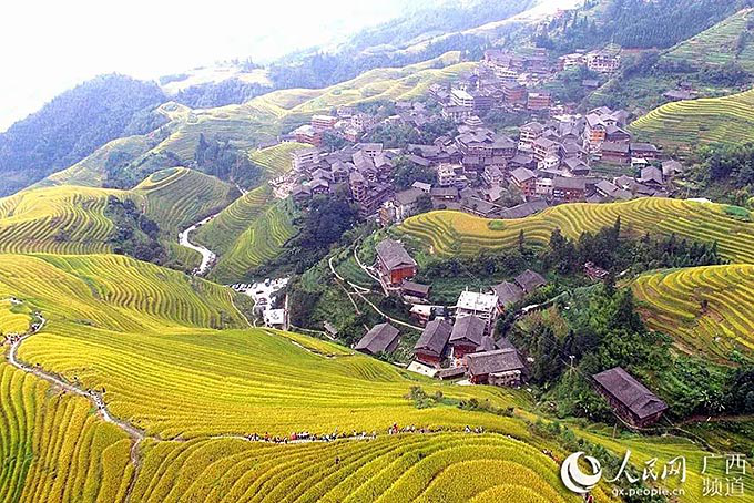 廣西龍勝各族自治縣梯田生機勃勃(人民網(wǎng))