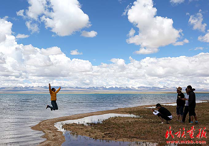 黃河源頭的游客在經(jīng)歷了旅途的艱辛和各種天氣的洗禮后笑容燦爛