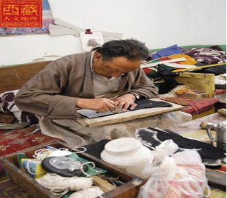 坐在工作臺(tái)上的赤列塔青,身材高大,穿一身合體的淺色藏裝,前擺上沾著幾星鼻煙,長(zhǎng)期用針的手指有些變形。翻開他的履歷發(fā)現(xiàn),赤列塔青可以說(shuō)是拉薩少有的制靴世家,他的父親邊巴頓珠在舊社會(huì)是個(gè)給人支差的貧苦鞋匠,靠給有錢人修鞋、做鞋為生。今年68歲的赤列塔青性格沉穩(wěn)、做事穩(wěn)健,他12歲當(dāng)學(xué)徒工,做鞋做了56年,如果再加上父輩的修鞋歷史,時(shí)間更長(zhǎng)。在今天的拉薩有這樣經(jīng)歷的人算是屈指可數(shù)了。赤列塔青從小就在父親和師傅身邊打下手,逐漸掌握這個(gè)足以養(yǎng)家糊口的一技之長(zhǎng),終于成長(zhǎng)為一個(gè)勤奮而多才的手工藝人,開始了穩(wěn)坐一隅的匠人生涯。