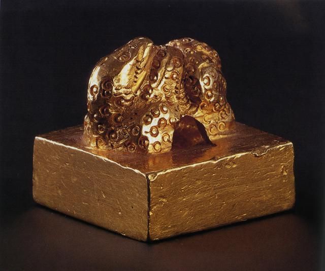 彌生時期,在中日關系史上的里程碑事件,是在日本福岡地區(qū)發(fā)現一枚金印,上有“漢委奴國王”五個字(圖七)?!逗鬂h書·倭國傳》中有“光武賜以印綬”的記載。即漢光武帝建武中元二年(公元57年),“奴”國曾遣使到洛陽,漢朝賜其王以金印。