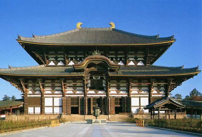 奈良時代雖不到百年,在日本文明史上卻留下了永久的痕跡。奈良地區(qū)的世界文化遺產共有9處,其中6個為寺院,最重要的寺院為法隆寺與唐招提寺。另7處為:東大寺、春日大社、春日山原始森林、元興寺、興福寺、平城宮跡、藥師寺(圖二十五)。