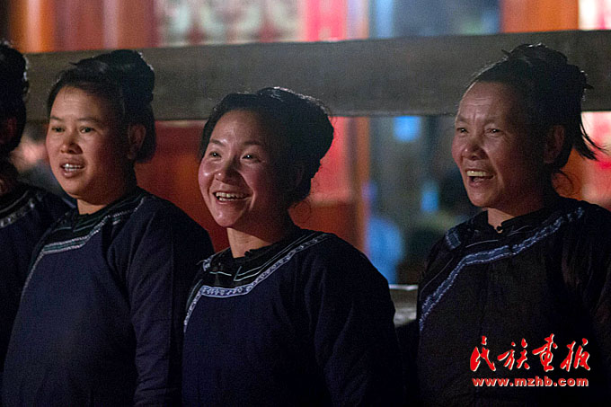 夜晚,侗寨鼓樓里的“音樂會”。