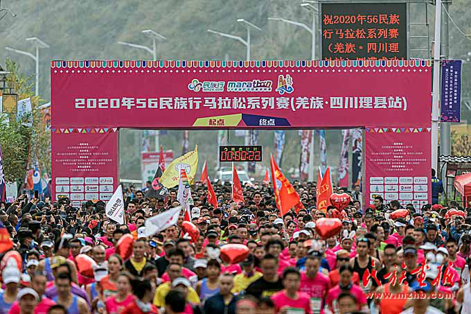 11月14日,2020年56民族行馬拉松系列賽(羌族?四川理縣站)在四川省理縣幸福開跑。