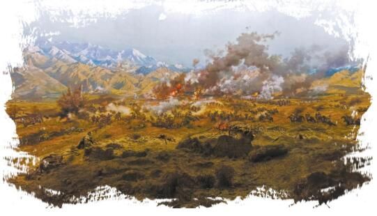 中國工農(nóng)紅軍西路軍紀念館內(nèi)復(fù)原當年戰(zhàn)斗場景的油畫。賈泓 鄭思哲攝