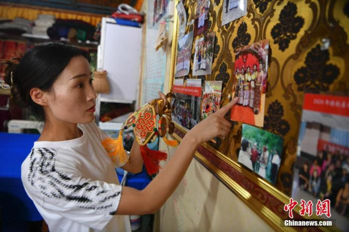 7月22日,提美的女兒邊宗向記者介紹她制作的配飾。 中新社記者 劉冉陽 攝