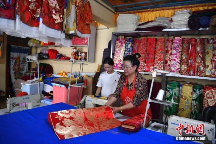 如今,年輕的邊宗正式繼承了母親提美的衣缽,成為藏服制作傳承人。邊宗一邊縫制衣服一邊對(duì)記者說,藏服工序繁雜,一會(huì)兒要手工,一會(huì)兒又要裁剪,一會(huì)兒又機(jī)器縫……