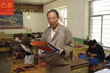 赤列塔青成年后,適逢西藏實行民主改革,拉薩市城北區(qū)的夏薩蘇和沖賽康各成立了一家“鞋業(yè)互助社”,八位鞋匠師傅每人掏50元錢入股,赤列塔青父子就這樣成了互助社的第一批成員?!昂髞淼氖虑樽兊煤軓?fù)雜!”赤列塔青說。從企業(yè)名稱和辦公地點的多次變更,可以了解到搞民族手工業(yè)不是一件容易的事情。西藏平叛后這個鞋業(yè)互助社改名勝利合作社,后來又叫前進鞋帽合作社,再后來改叫城關(guān)區(qū)鞋一廠,現(xiàn)在的名字是彩泉民族手工業(yè)公司。原來的廠址在老沖賽康附近,后來搬到木鹿寺后面,現(xiàn)在駐進城北的佳村曲美,廠名變了,地址變了,不變的是人。赤列塔青認為,只要人在,企業(yè)就有希望。