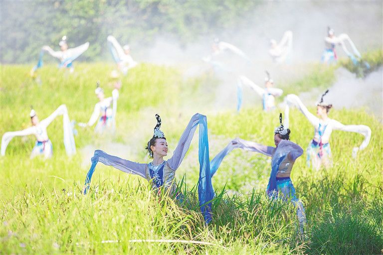 實(shí)景演出在山蘭稻田里上演。李天平 攝