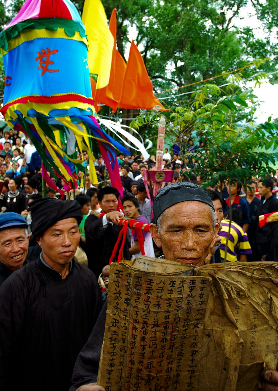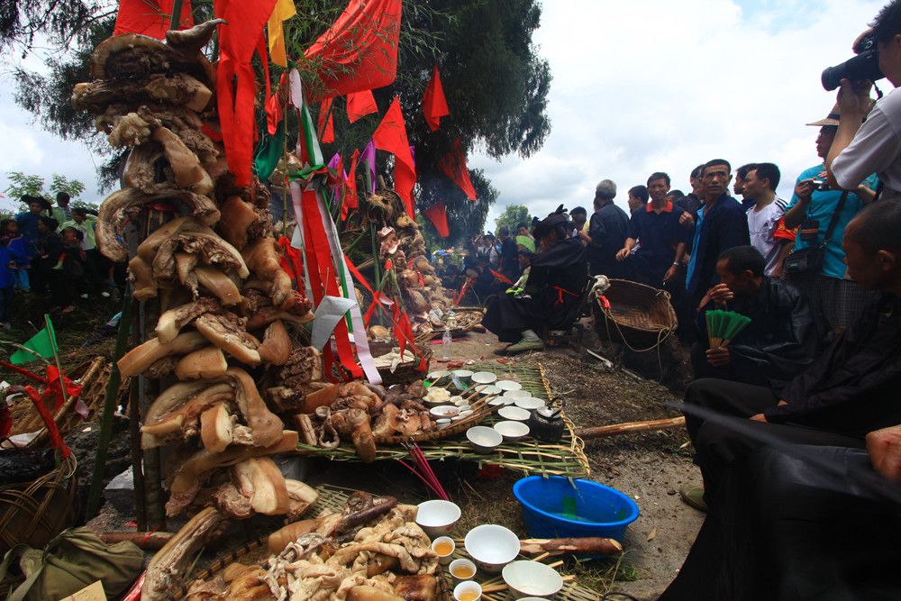 人們傳說(shuō)只有醉倒了"霞神",它才能永遠(yuǎn)留在這方,才能使這里風(fēng)調(diào)雨順。當(dāng)水書先生念了最后的咒詞,祭典才在鼓樂(lè)聲和歡呼聲中結(jié)束。最后,各族系將祭肉一并聚攏,聚餐慶祝。天黑之后,人們秘密地將"霞神"收藏起來(lái),至此,"敬霞"活動(dòng)全部結(jié)束。