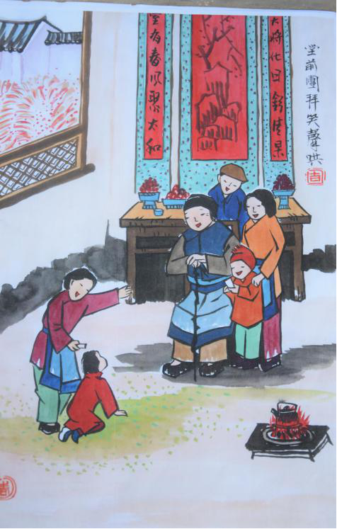 而張旭東的年味,則更加具象。繪畫(huà)是具象的藝術(shù),張旭東的畫(huà)是為過(guò)年而繪,為金華古鎮(zhèn)家家戶戶的年味而繪。