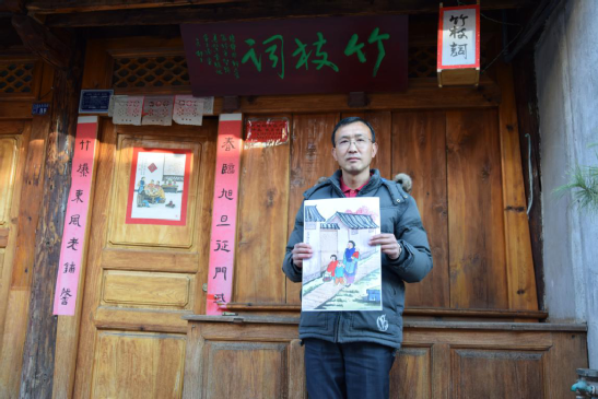 張旭東的童年,是在祖父母的耳提面命中度過(guò)的,他跟隨老人習(xí)書(shū)繪畫(huà),學(xué)禮明俗。到了弱冠之年,他逐一拜訪古鎮(zhèn)中尚在的民國(guó)時(shí)期出生的老輩文人,向他們請(qǐng)教劍川白族傳統(tǒng)民俗,并做了系統(tǒng)梳理,這也為他后來(lái)繪制年畫(huà)、撰寫(xiě)春聯(lián)打下扎實(shí)的理論基礎(chǔ)。