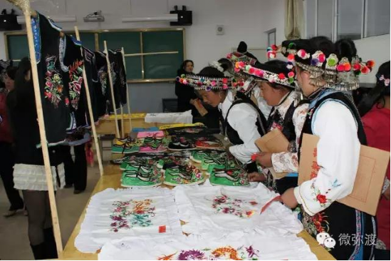 繡花鞋分大口鞋、小口鞋兩種。大口鞋大方素雅,小口鞋古樸艷麗?;佑小胺遐s梅”、“喜鵲登枝”、“獅子滾雪球“、“鳳穿牡丹”和彝族人民結(jié)婚時候,按當(dāng)?shù)仫L(fēng)俗所需必須穿的“毛邊底”等。這些花樣圖案具有不為時代變幻所動的恒久性質(zhì),蘊藏著濃厚的傳統(tǒng)民俗文化。它給予人們的絕不僅僅是絢麗悅目的美感,還是彝民們征服自然,繁衍生息,爭取愛情和歡樂的記錄。
