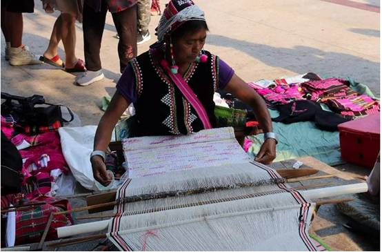織錦是各民族生活中不可缺的勞作。紡線原料以棉纖維和麻纖維為主。 棉主要是草棉、白棉沙線、黑棉沙線、紅棉沙線,麻主要為苧麻和野生火麻。在織錦的過(guò)程中,婦女端坐在紡車(chē)前,凝神專(zhuān)注地操持著手中的活計(jì)。 織一匹布大約需要20天至一個(gè)月左右的時(shí)間。