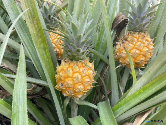 “我現(xiàn)在再砍去一些菠蘿的葉子,防止采收時割傷,同時讓太陽曬到菠蘿,讓菠蘿更好吃?!辈ぬ}地里,金黃的菠蘿隱藏在綠色的“皇冠”和葉片之下,馬停紅正在修剪菠蘿葉。
