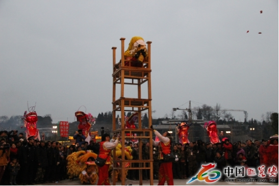 在貴州甕安的草塘,春節(jié)期間不只有舞龍表演,還有舞獅。舞獅代表歡樂(lè)和人們心中的祝福,是美好生活的象征。高臺(tái)舞獅因其含有雜技表演,最受群眾喜愛(ài)。