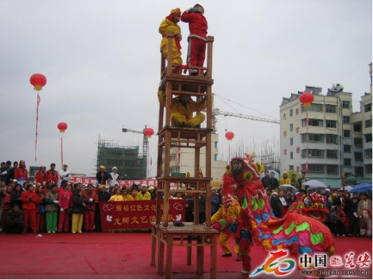 草塘高臺(tái)舞獅已有一千多年的歷史,祭祀的形式隨著社會(huì)的變革而改變,它將雜技、體育、舞蹈融為一體,具有較高的歷史、文化和藝術(shù)價(jià)值。
