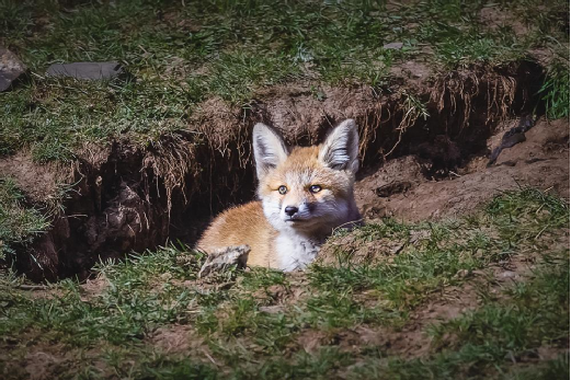 不知不覺中,太陽已經(jīng)下山了。面對三只小家伙從警覺、驚喜、歡快到煩躁、無奈、焦慮的神態(tài)變化,我對記錄了小赤狐一天的喜怒哀樂而高興,又為小赤狐整整一天的忍饑挨餓而擔憂,趕緊收拾攝影器材,撤離它們賴以生存的家園,還它們一個不被打擾的寧靜……
