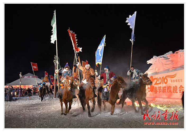 2016年中央電視臺(tái)春節(jié)聯(lián)歡晚會(huì)北方分會(huì)場的呼倫貝爾市陳巴爾虎旗 (呼倫貝爾市市委宣傳部供圖)