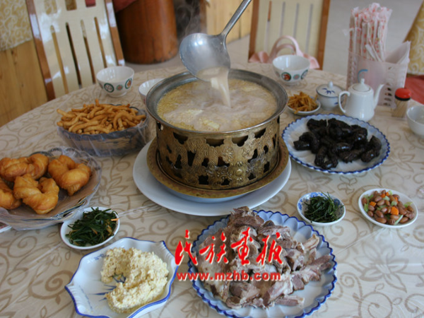 白食除了滿足人們食用需求之外,還有較高的藥用價值。白食中蘊含著大量的氨基酸、蛋白質、油脂、微量元素等有益物質。奶茶可以消除肉食的油膩,促進消化吸收;馬奶可以增加胃液,幫助消化;酸奶能治療內臟疾病,健胃、壯陽、降血脂、止渴解毒;黃油能安神養(yǎng)神、潤肺通絡……