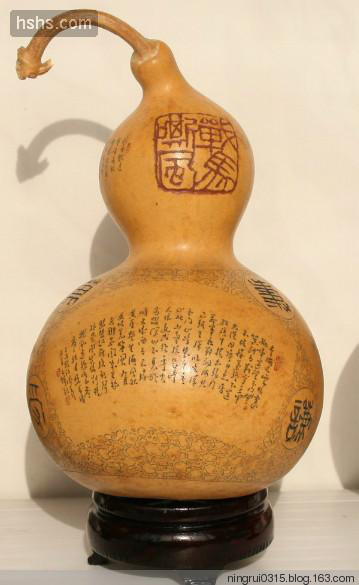 葫蘆雕集繪畫、書法、篆刻藝術(shù)于一體,傳承和發(fā)展了我國傳統(tǒng)“葫蘆文化”。甘肅的雕刻葫蘆最早出產(chǎn)于蘭州,距今約100多年,據(jù)說早期的蘭州雕刻葫蘆比較簡單,對(duì)葫蘆不會(huì)做刮皮、磨光等加工處理,也不填色;只是在葫蘆表皮雕刻出山水、風(fēng)景或戲劇人物,作為兒童的玩具,在街頭巷尾出售。到了清代光緒年間,秀才蘭州人李文齋對(duì)葫蘆雕刻工藝做了改進(jìn)。他針對(duì)當(dāng)時(shí)雕刻表面粗糙、題材單調(diào)的弊端,首先將葫蘆原生表皮刮去、磨光,并用鏹水混合燃料,染成紅黃二色,是雕刻的景物不易脫落;其次,擴(kuò)大圖案創(chuàng)作題材,在原有山水、花草等圖案基礎(chǔ)上,增加了如《桃花源記》、《蘭亭集序》、《竹林七賢》等歷史文化和神話故事,形成了圖文并茂的題材格局;最后是在雕刻工具上采用了以針代刀,使圖案形象更加情景交融,栩栩如生。其雕刻葫蘆的特點(diǎn)主要是求其意態(tài)之美,追求神似;人物寥寥數(shù)筆,山水花卉濃淡相宜,形神兼具,求其風(fēng)雅;題款文字、細(xì)如蚊足,點(diǎn)綴成行,瀟灑自如。