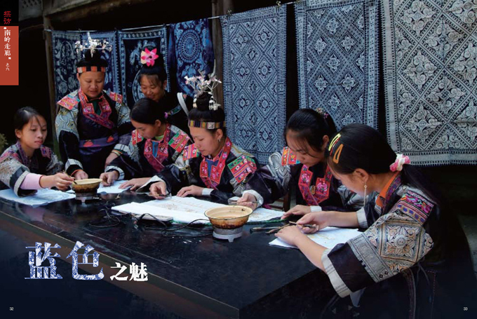 蠟染是貴州省丹寨縣、安順縣、織金縣苗族世代傳承的傳統(tǒng)技藝。 丹寨縣、安順縣及織金縣是以苗族為主體的多民族聚居區(qū),在長(zhǎng)期與外界隔絕的艱苦環(huán)境中,這里的居民逐漸形成了自給自足的生活方式,古老的蠟染技藝因此得以保留下來。按苗族習(xí)俗,所有的女性都有義務(wù)傳承蠟染技藝,每位母親都必須教會(huì)自己的女兒制作蠟染。所以苗族女性自幼便學(xué)習(xí)這一技藝,她們自己栽靛植棉、紡紗織布、畫蠟挑秀、浸染剪裁,代代傳承。在此狀況下,這些苗族聚居區(qū)形成了以蠟染藝術(shù)為主導(dǎo)的衣飾裝束(以上三照片由劉軍提供)。