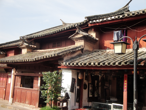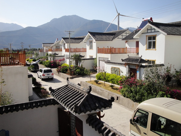 ?、扇恳徽毡诹餍杏谠颇洗罄砦∩降鹊匾蛥^(qū)。主房順山勢依山而建,兩側耳房較低,再加一照壁,為土木結構的組合建筑。多數(shù)為草房,少數(shù)為瓦房,有帶廈和不帶廈兩種。房形有實心房、空心房;吊廈、鸚哥房用木板搭成踩樓。主房高于耳房,主次分明,布局協(xié)調(diào)。前面垂檐,形成前出廊的格局,以一排柱子為主的屋架承重,四柱落地,左右后三方用土基墻圍護,前面及中央用木板為隔。主房山墻到頂,屋面挑出。