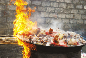 壩壩宴最能體現(xiàn)出金陽(yáng)人的飲食文化。但要吃出味道,吃出氛圍,則大有講究。在形式上,吃飯聲勢(shì)要大,食客多多益善。在內(nèi)容上,肉要多,平均每個(gè)人至少有5塊坨坨肉。如果不夠吃,辦酒的主人家就會(huì)覺(jué)得丟臉,別人也會(huì)有所議論。一般來(lái)講,一桌上一盆肉,8斤左右為宜。