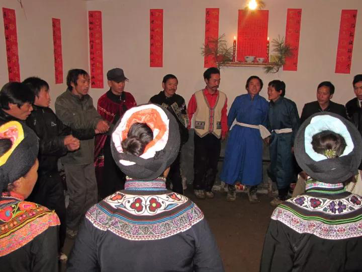 3、源自于宗法禮教。在阿買懇的唱詞中,有阿買懇是君長制定的規(guī)矩之說,根據(jù)彝族典籍文獻記載和民間傳說,反映古代彝族水西君長家和烏撒君長聯(lián)姻嫁娶時,都興阿買懇,說明阿買懇是君長興起這一說法是由根據(jù)的。彝族是一個很重視宗法禮教的民族,各種禮儀習(xí)俗和規(guī)章制度比較細(xì)密而嚴(yán)格,作為人生重大禮儀的婚儀,必然有許多規(guī)矩,阿買懇的幾十項程序性對答吟誦,就足以說明了這一點。但它也并非完全是“君長制定的規(guī)矩”,它更多的是百姓的禮俗和情趣,因為,在阿買懇唱詞中反映的勞動場景的內(nèi)容很多。實事求是的講,阿買懇應(yīng)該是由君長所倡導(dǎo)和認(rèn)可,由廣大彝族民眾興起,經(jīng)布摩和民間歌師共同創(chuàng)作、經(jīng)民眾在演唱過程中反復(fù)修訂而形成的。