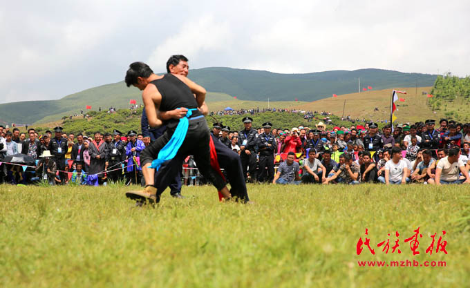 節(jié)日里舉行的彝族式傳統(tǒng)摔跤“格”是全國少數(shù)民族傳統(tǒng)體育運(yùn)動(dòng)會(huì)的比賽項(xiàng)目,很受彝族群眾喜歡