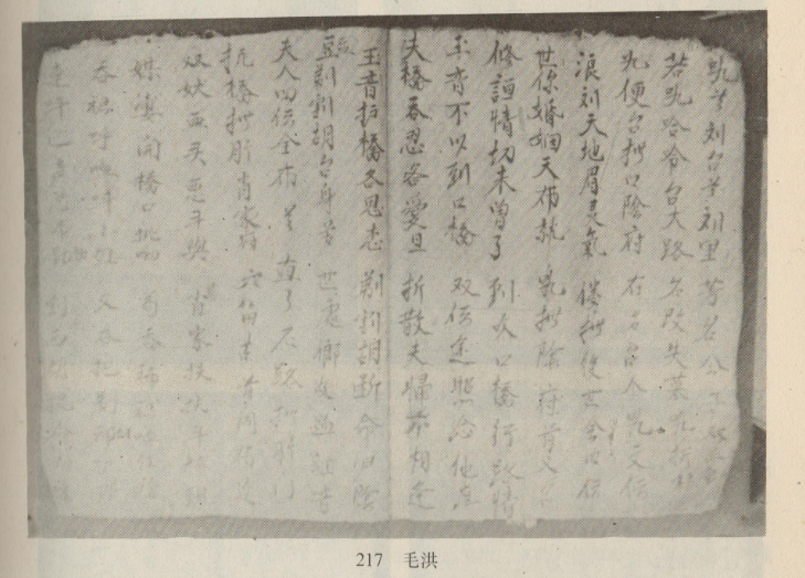 廣西方塊壯字七言故事詩歌手抄本。無寫作年代及作者姓名。據(jù)老人推測,此書傳抄于清咸豐之前。本世紀70年代收集于上林縣。寬19厘米,高22.7厘米,厚1厘米,共36頁,878行。內(nèi)容敘述前朝六部尚書張某與翰林毛某訂親,后因毛某家破人亡,張家毀約,欲將其女張玉音另嫁有財勢的肖家。玉音以理抗婚,愿嫁幼時之友毛洪,慕其人窮志不窮,然肖家花轎已到,她無奈蹬轎,在轎內(nèi)自盡身亡。本詩歌對研究古代壯族民間社會風(fēng)情、婚姻習(xí)俗和倫理觀念有重要的價值?,F(xiàn)為蘭多民個人保存。