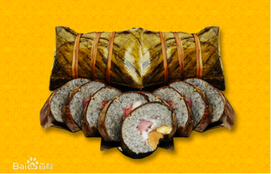 另一種是廣西壯族自治區(qū)寧明縣壯民在春節(jié)時(shí)做成的大壯粽。這種粽粑大得驚人,以芭蕉葉子包成,內(nèi)放一條剔去骨頭的腌豬腿,足有八仙桌那么大。包好的粽粑放在大水缸里,注滿(mǎn)清水,蓋嚴(yán)缸口。在大缸外面用稻草繩子繞滿(mǎn)。煮的時(shí)候,先點(diǎn)燃草繩。再在四周不斷加放谷殼,一連燒七天七夜,粽粑便熟透了。春節(jié)時(shí),歡樂(lè)的人民抬著大粽粑游街祭祖。然后同族的人分食這只吉祥的大粽粑,以示大家同心同德,和睦美滿(mǎn)。