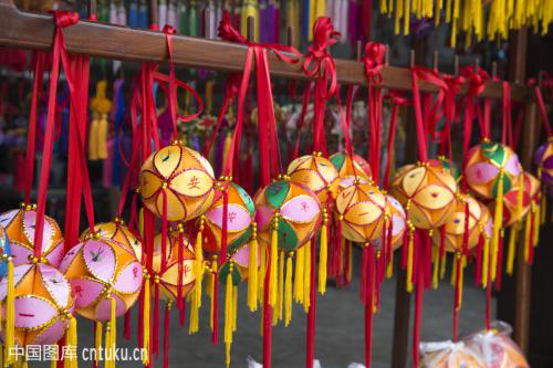 現(xiàn)今,壯家手工藝者們不斷為繡球這一古老藝術(shù)品注入新的活力,令其在新時(shí)代再次放出璀璨的光芒,廣西曾做過(guò)超大繡球供日本國(guó)立民族博物館收藏,同時(shí)為迎接港、澳回歸分別制作直徑達(dá)1.97m和2m的超大型繡球;為慶祝申奧成功,制作了直徑達(dá)2.2m的超大型繡球;為迎接中國(guó)——東盟博覽勝利召開(kāi),制作了直徑2m以上的超大型繡球等,廣西靖西縣舊州已成為重要的繡球生產(chǎn)基地。