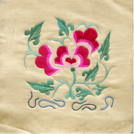 傳統(tǒng)意義上的滿族刺繡源于民間,流行于遼寧、吉林、黑龍江等滿族聚集地,屬于一種民間手工技藝。滿族民間刺繡,俗稱“針繡”、“扎花”、“繡花”,具有強烈的民族、地域特色,其造型夸張、粗獷、拙樸,色彩艷麗,冷暖對比強烈,構圖細膩,情感樸實。