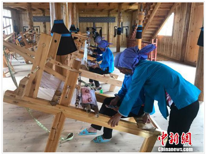 聽(tīng)聞姐姐在這里織錦每月可拿到3000多元的收入,今年7月,此前在廣東務(wù)工的文坡村二組村民龍練霞干起了這份家門(mén)口的工作,再也不想外出了。“既方便照顧家人,又可以抽空干點(diǎn)農(nóng)事?!苯衲?0多歲的龍練霞說(shuō)。和她一樣,看到侗錦的銷(xiāo)路慢慢打開(kāi)了,村里許多在外務(wù)工的年輕人也紛紛返鄉(xiāng),拾起祖輩們的老手藝。