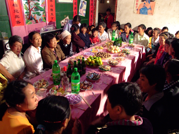 土家族人平時(shí)每日三餐,閑時(shí)一般吃?xún)刹?;春夏農(nóng)忙、勞動(dòng)強(qiáng)度較大時(shí)吃四餐。主食以苞谷(玉米)、洋芋(土豆)、紅苕、蕎麥等雜糧為主。日常主食除米飯外,以苞谷飯最為常見(jiàn),有時(shí)也吃豆飯。副食多辣椒、酸菜、豆渣拌青葉菜(稱(chēng)“合渣菜”)。蔬菜類(lèi)春季有青菜、白菜、蔥、蒜等,夏季有金豆、黃瓜、韭菜等,秋季有豇豆、南瓜、冬瓜、茄子等,冬季有各種干菜。其他傳統(tǒng)副食還有白酒、糍粑、團(tuán)馓、米豆腐、油炸粑、甜酒糟等。