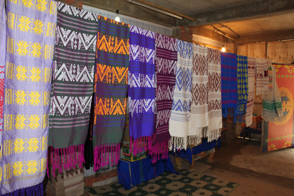 云南傣錦歷史悠久,風格古樸,以其織工精巧、圖案別致、色調鮮艷、堅牢耐用和富有民族特色而著稱。它主要流傳和盛行于云南省南部的西雙版納傣族自治州,西南部的德宏傣族景頗族自治州、耿馬傣族佤族自治縣、景谷傣族彝族自治縣,以及孟連傣族拉祜族佤族自治縣等傣族較聚居的區(qū)域。云南傣錦是一種以絲線、毛線、棉線、麻線、晴綸線、金絲線等材料為原料,采用傣族傳統(tǒng)的木架織機手工操作,經提花、織造等工藝形式制作成的長條形織錦物,是云南的傣族人民從事宗教活動和美化生活必不可少的物品。傣錦長短不一,幅寬一般為20-60厘米不等。因其花紋絢麗多彩、形象生動、變化多端 、呈立體形,在云南少數民族織錦中獨樹一幟,享有很高的聲譽。傳統(tǒng)的云南傣錦按構成形式和材料主要有兩種即西雙版納傣錦和德宏傣錦。西雙版納傣錦以白色為底,用紅色和黑色緯線織成花紋,傣錦線條寬窄有致,形體夸張簡練,圖案較為規(guī)律化,具有粗獷的質樸感和濃厚的裝飾性;而德宏傣錦則色調較為濃重,常用黑、紅、翠綠、黃、藍等濃艷色彩的絲線和棉線摻用金絲錦線織制,圖案以菱形、方形、六角形及回形紋等幾何形為主,織錦鮮艷奪目,結構嚴謹,紋飾古雅,尤顯華麗。