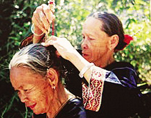 2007年8月下旬,《胡亞玲海南黎族苗族風(fēng)情攝影圖片展》在海南舉行?!霸撜褂[關(guān)于黎族苗族風(fēng)情記錄之全,超過(guò)了此地的博物館”,海南師范大學(xué)一位教授看了展覽后感慨地說(shuō)。然而,十多年來(lái),有誰(shuí)知道因長(zhǎng)期艱辛跋涉,胡亞玲患上了類風(fēng)濕,因雙膝腫大住了兩個(gè)月醫(yī)院;又有多少回在采風(fēng)路上,車陷泥坑,路遇臺(tái)風(fēng)……還有多少次的采風(fēng)留下了遺憾:就像2000年的“五一”期間,胡亞玲足足等了幾年的拍攝題材,卻因摩托車禍,眼看著機(jī)會(huì)從身旁溜走……但是,正是因?yàn)橛辛讼窈鷣喠徇@樣的非物質(zhì)民間文化遺產(chǎn)的守望者,有了他們的堅(jiān)持,后人才可以欣賞到祖先留給我們的寶貴的文化財(cái)富,我們的內(nèi)心世界才會(huì)變得豐盈和充實(shí)。