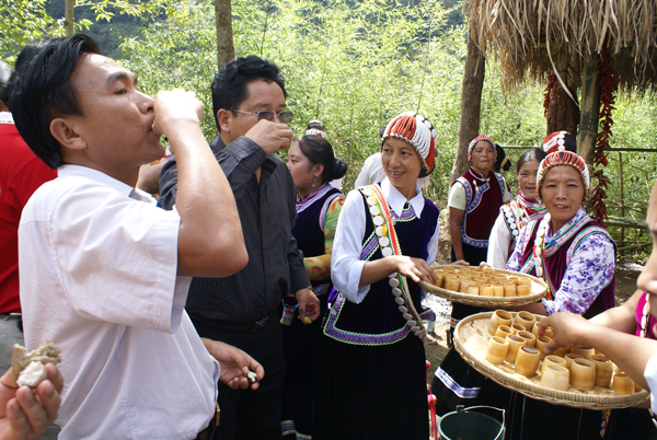 吃飯時(shí),主婦要先給老人、小孩盛飯,再盛給丈夫,自己最后吃;在吃飯時(shí),要不停地給老人、小孩夾菜、添飯、舀湯;如有客人一起共餐,主婦要先給客人,并不間斷地給客人夾菜、添酒。傈僳族還有許多嚴(yán)禁貪食、暴食、獨(dú)食的飲食禁忌,他們有許多諺語(yǔ)都是辛辣諷刺貪食、暴食、獨(dú)食之徒的,如“漢子因榮譽(yù)而死,饞人因好吃而亡”“獨(dú)食者噎食,不合群者憋死”等。