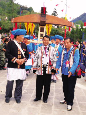 一場(chǎng)盛大的傈僳族節(jié)日聚會(huì),背后的弩弓形象顯而易見(jiàn)。