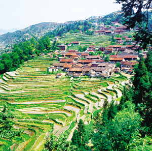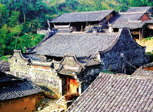 畬族主要聚居在浙江省和福建省山區(qū)的丘陵、山谷盆地。浙江景寧是我國唯一的畬族自治縣。畬族聚居的村寨都在離縣城不遠的大山里,大都選擇避風向陽、有水源的地方建房成村。在村寨四周栽種松樹、楓樹、榅樹、苦櫧,房前屋后種毛竹、果樹。村口有樹能擋風,屋后種樹能蓄水,空氣也格外新鮮,因此,便有了“造成風水畫成龍”的畬族諺語。