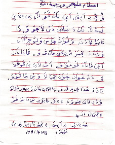 普查小組征集到的上世紀80年代,遠在新疆的東鄉(xiāng)人用“小經(jīng)”文字給親戚寫的家信,內(nèi)容是索要戶口本。資料圖片