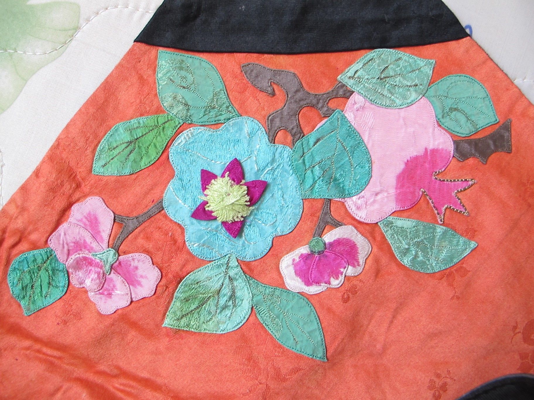 第四步是刺繡。機繡作品雖然操作簡便,速度快,工作效率高,但由于不能隨時調換粗細不同的機針或不同顏色的機線,圖案比較簡單,繡法也不能象手工繡那樣靈活多變,所以東鄉(xiāng)族婦女對能充分施展本領的手工繡情有獨鐘。