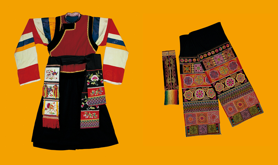 圖為青?;ブ磷宀市渑c牡丹紋布腰帶,中央民族大學(xué)民族博物館館藏