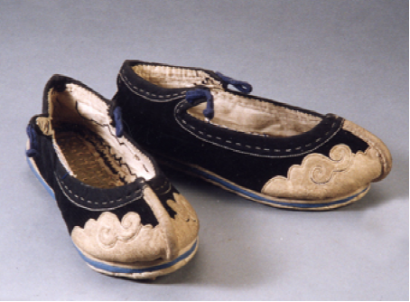 一般來(lái)說(shuō),一套傳統(tǒng)羌族服飾包括長(zhǎng)衫、坎肩、褲子、腰帶、圍腰、裹肚、帽子、鞋子等。一件羊皮坎肩需要兩張羊皮,制作時(shí)將羊皮浸泡在草木灰中發(fā)酵,用木銼子除去腐肉、油污,直至羊皮光滑后再縫制。羊皮坎肩四季均可穿,有“羊皮褂子兩面穿,天晴下雨不離肩”的俗語(yǔ)??布鐭o(wú)領(lǐng)、無(wú)袖、無(wú)扣,四周露出羊毛,晴天毛向內(nèi)穿,雨天毛向外穿,可作墊背,負(fù)重等,也可防寒、避雨;圍腰屬于婦女特有,有半襟和滿襟兩種,多用深藍(lán)色或黑色布料。半襟圍腰略成長(zhǎng)方形,長(zhǎng)約70厘米、寬約60厘米,圖案完全對(duì)稱。圍腰上的包袋是重點(diǎn)裝飾部分。滿襟圍腰上窄下寬,呈“凸”字型,一般長(zhǎng)為90厘米、底寬74厘米、胸寬20厘米,袋包多為一個(gè)大包或兩個(gè)相連的小包,位于圍腰中心,圍腰上布滿各種圖案,有團(tuán)花、火盆花、升子印、窗子格、燈籠須。這些復(fù)雜繁多、結(jié)構(gòu)巧妙的羌繡工藝,具有濃厚的羌族特色;羌族有草鞋這種日常鞋子,也有“云云鞋”。云云鞋的鞋尖微翹,貌似小船,鞋底較厚,以各色布包邊,用麻線密納,增強(qiáng)了鞋子的耐磨性。鞋幫繡有各形的彩色云紋,水波或杜鵑花紋式樣,故名“云云鞋”,也稱“花鞋”。羌族姑娘常將自己親手制作的花鞋送給小伙子,當(dāng)作定情信物?,F(xiàn)在,羌族人將云云鞋當(dāng)作節(jié)日的盛裝,只有在重大節(jié)日時(shí)才穿。