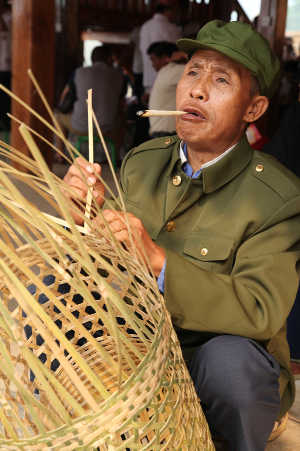 (1)竹編。布朗族居住地盛產(chǎn)竹子和藤篾,家庭用具、生產(chǎn)工具多偏愛竹制品。每一個(gè)布朗族成年男子都會(huì)編織各種竹器,如篾籮、飯盒、簸箕、篾席、背簍、篾桌、針線盒等。這些手工藝品多數(shù)自用,剩余的拿到壩區(qū)市場進(jìn)行交換。也有少數(shù)人以編制竹器為生。布朗族男女都會(huì)編制蓋房用的草排。