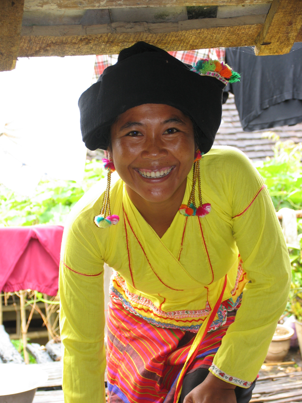 婦女的衣裙與傣族相似,上穿緊身短衣,頭頂挽髻,用頭巾纏頭,喜歡戴大耳環(huán)、銀手鐲等裝飾。姑娘愛(ài)戴野花或自編的彩花,將雙頰染紅。一般,女子上著左右兩祚斜襟窄袖黑色小褂,小褂為圓領(lǐng)、緊腰、寬擺,短及臀部,在左肋下拴線打結(jié),已婚婦女用黑色布料,未婚姑娘喜淺藍(lán)色或白色。里衫為無(wú)袖貼身夾衫,下穿兩條筒裙,內(nèi)裙為白色,外裙有兩色,臀部以上為紅色橫條,腿下為綠色或黑色,用布條或花邊鑲飾。未婚婦女用黑或藍(lán)布包頭;已婚婦女梳發(fā)髻,插銀簪,頂端鑲3顆棱形玻璃珠,下系銀鏈,纏包頭。婦女戴銀耳環(huán)、項(xiàng)圈、手鐲等飾品。