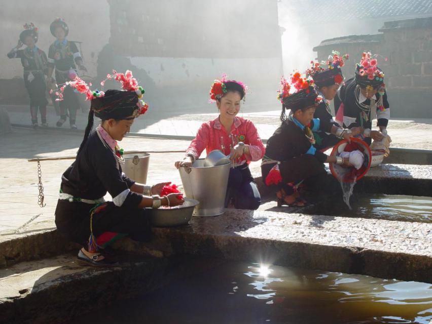 各地男子的服飾大同小異,均留短發(fā),未婚男子包一頭或兩頭鎖彩邊的白布或黑布包頭,已婚男子包藏青色布包頭。青年男子的包頭上往往插有鮮花或絨球飾。穿藍(lán)、白、黑等素色斜紋布對(duì)襟布扣袢上衣,黑色或藍(lán)色長褲,系黑色綁腿。未婚婦女留長發(fā)盤辮。穿白、藍(lán)色對(duì)襟銀扣上衣,黑、藍(lán)色長褲。系繡花飄帶黑布裙。