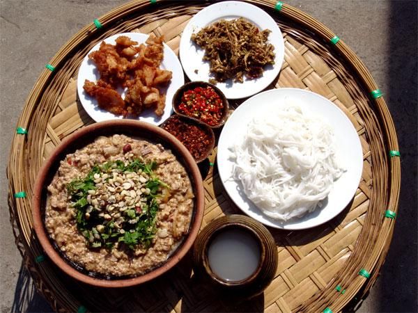 阿昌族還喜歡吃竹筍、竹蛆和蜂蟲、蜂蛹等。竹筍的吃法有鮮竹筍、干竹筍、腌酸筍等。鮮竹筍肉嫩細(xì)香,可當(dāng)蔬菜,也可與肉、豆類等炒著吃。竹蛆是一種生在嫩竹中的蟲蛹,色白個(gè)大,肉肥細(xì)嫩。有時(shí)一節(jié)竹子中有數(shù)百條,取出后用油炸脆,色澤金黃,撒點(diǎn)鹽而吃,是一種高蛋白鮮美食品。食用的蜂蟲、蜂蛹主要有黃腰蜂、夜時(shí)蜂、草蜂等土蜂類的蛹和幼蟲?;蛘ɑ虺矗愦嗫煽冢瑺I養(yǎng)豐富。