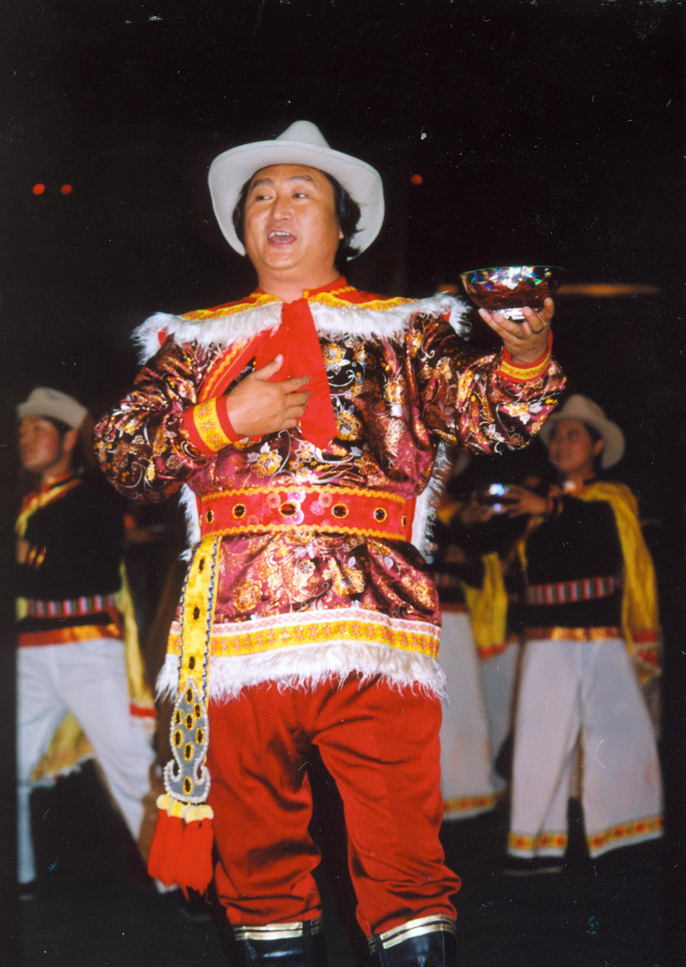 男子上衣為對襟金邊短衣,以黑白兩色為佳,扣雙鈕在肘下。下穿麻布寬襠開桶褲,不用褲帶,下加九尺長,五寸寬的麻布為梆腿至腳,上加五寸寬的白麻布在襠口起收縮作用,不穿內(nèi)褲,腰間纏一根九尺長的腰帶,衣褲一并栓緊,上下不分開,以便于活動。富貴人家則腳穿靴子,靴底釘上鐵釘,走起路來格格作響,以示貴人一等。一般貧民則大多赤腳,或穿草鞋。日常生產(chǎn)勞動中,則穿羊皮褂,用麂皮或巖羊皮制成,腰間插煙鍋。普米青壯年男子穿短上衣,有開襟,用銀質(zhì)紐扣,穿肥腳褲子,大多喜用黑色,少數(shù)用藍(lán)色,外邊穿一件長衫,束腰帶;喜用白羊毛制作腰帶,兩頭繡花,纏麻布裹腿,穿皮鞋。男子留長發(fā),也用絲線把假發(fā)包纏在頭上。也有些普米男子剃光頭,僅在頭頂留一撮發(fā),編成辮子,盤于頭頂。老年男女所穿衣服與成年男女基本相同,只是衣服大多用黑色,不戴飾物,也不用假發(fā),有的也纏帕子,但多用藍(lán)包,包頭布也比青年人長得多,一律扎素色腰帶,很少穿鞋。