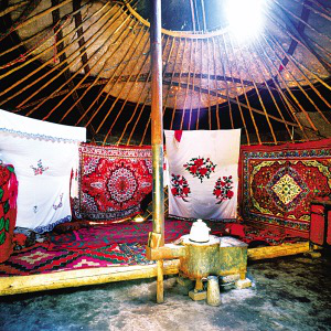 新疆維吾爾自治區(qū)木壘縣大南溝牧場上氈房內(nèi)的裝飾